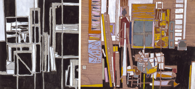 gouache sur papier A 21 x 18,2 cm B 21 x 26,2 cm