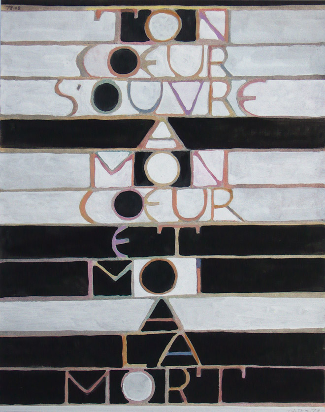 78.08 Inscription- Ton cœur s’ouvre à mon cœur et moi à la mort texte de J Clancier attribut