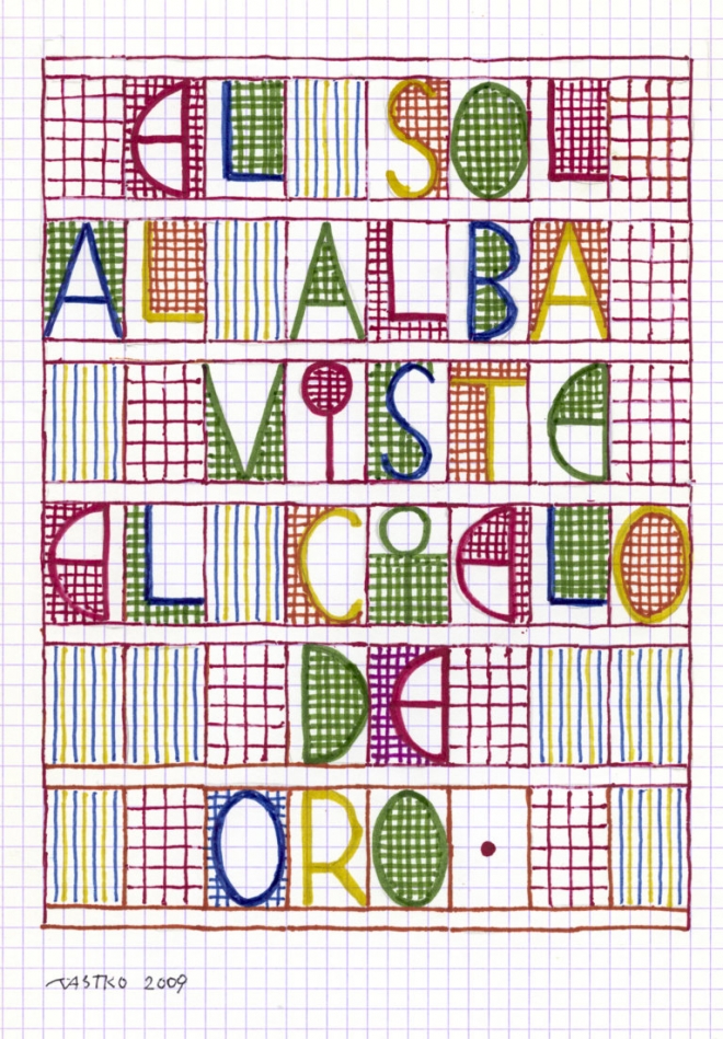 10-I-G, Poem by Sergio de Castro: El sol al alba viste el cielo de oro, 2010. Ink on paper, 29,7 x 21 cm.