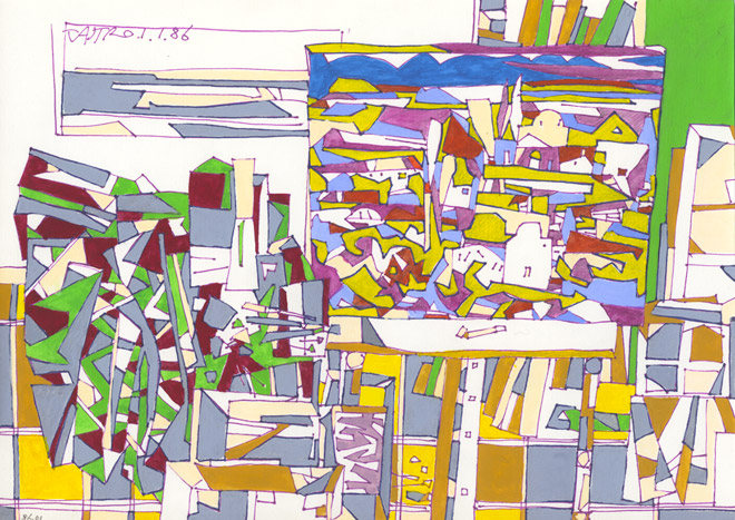 Encre de Chine, pointe bic, lavis, aquarelle et gouache sur papier entoilé, 296 x 214mm